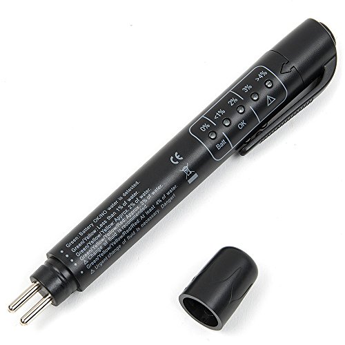 PRODUCT DESCRIPTIONS:Staying safe and knowing that your car is in top condition is most important. Ideally, brake fluid should be checked regularly and changed every one to two years. As moisture seeps into the brake system through the brake hoses and seals the brake fluid will become contaminated and the danger of brake failure will increase. This pen-shaped brake fluid tester can easily help determine whether it's time for you to change your brake fluid.